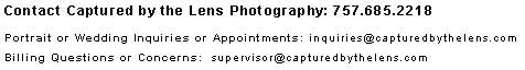 (See her work through-out the Captured by the Lens website!) Lisa is one of the owners and the lead photographer for Captured by the Lens Photography. Lisa lives in Virginia Beach, Virginia. She began taking photographs at the age of 4 and received her first manual-focus camera as a gift from her aunt at the age of 10. From that point on you couldnt catch her without a camera in her hands.